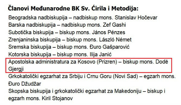 Pra, katolikët e Kosovës në Serbi e kanë qendrën administrative, përkundër faktit se një Konferencë e tillë Ipeshkvnore funksionon edhe në Shqipëri.